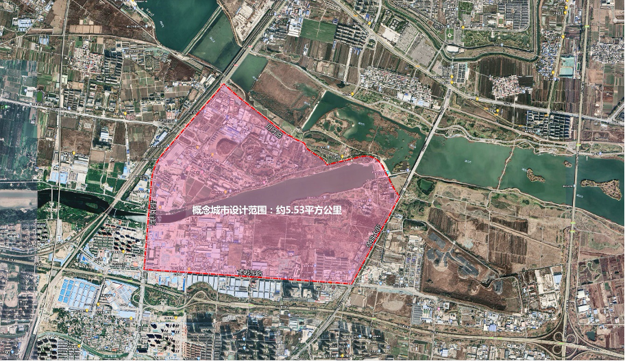 The conceptual urban design of Taiping River urban area covers an area of about 5.53 square kilometers, with the Gucheng East Road to the south, Shengli North Street to the west, the right bank of Hutuo River to the north, and the Tiyu Street to the east.