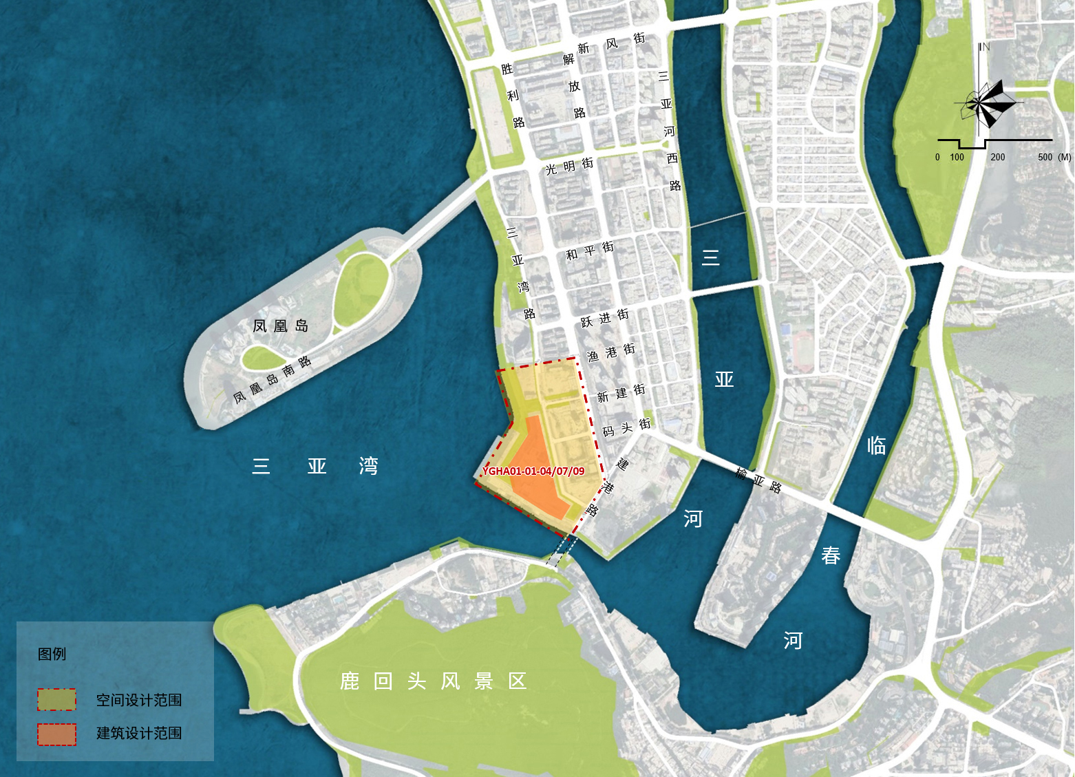 1.項目地點:三亞文化商務(wù)區(qū)(空間設(shè)計范圍)位于三亞灣鳳凰海岸南端,三亞河口區(qū)域,北至漁港街,南至建港路,東至勝利路。三亞國際藝術(shù)港(建筑設(shè)計范圍)位于三亞文化商務(wù)區(qū)YGHA01-01-04/07/09地塊。