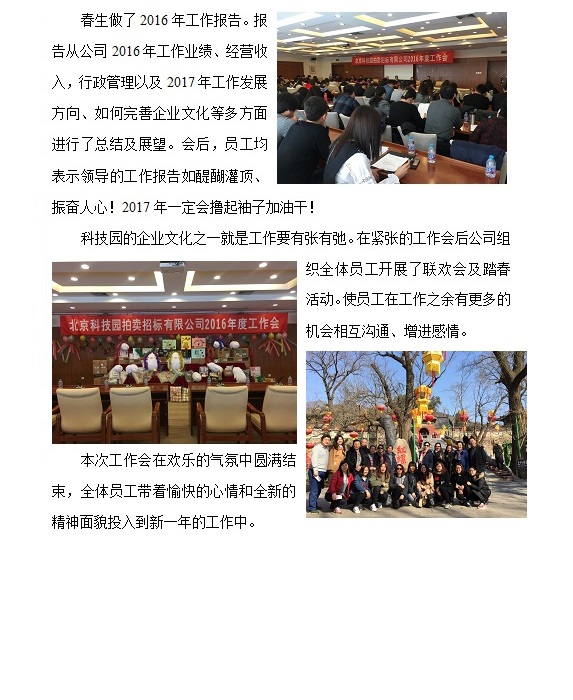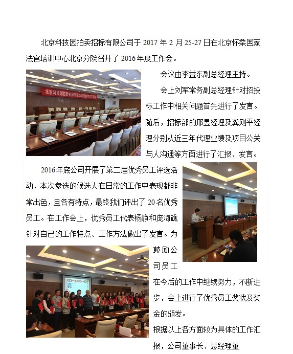 北京科技園拍賣招標有限公司2016年度工作會簡報